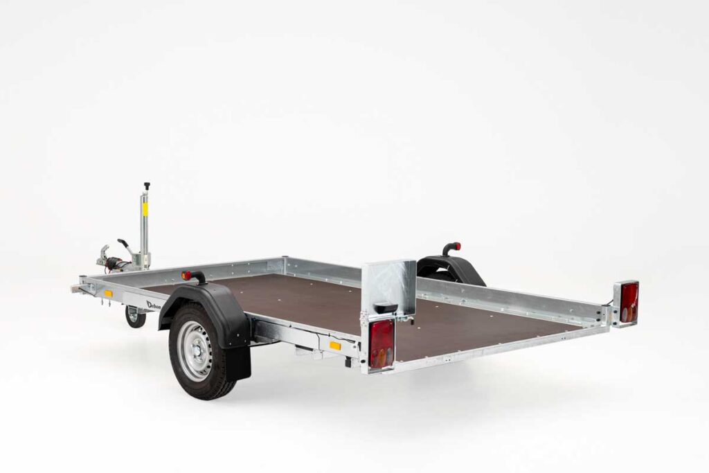 Features include automatic jockey wheel, reinforced mudguards, anti-spray flaps, and six heavy-duty lashing hooks. Also available in an unbraked version, it offers a flexible, reliable, and safe transport solution for work or leisure.